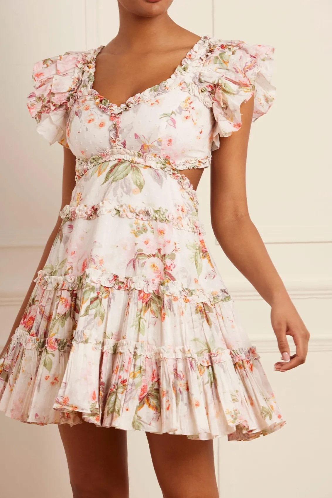 The Paradise Garden Cotton Backless Micro Mini Dress in Moonshine. The print of this dress is inspired by an enchanting paradise garden print, taken from an 1900s hand-painted artwork. This dress is designed with a luxe, twilight inspired colour palette in rich, lush floral motifs to create a truly alluring print. Designed with an open back in the most flattering and secure way, with a button finish at the top neck. A transitional day to night piece.