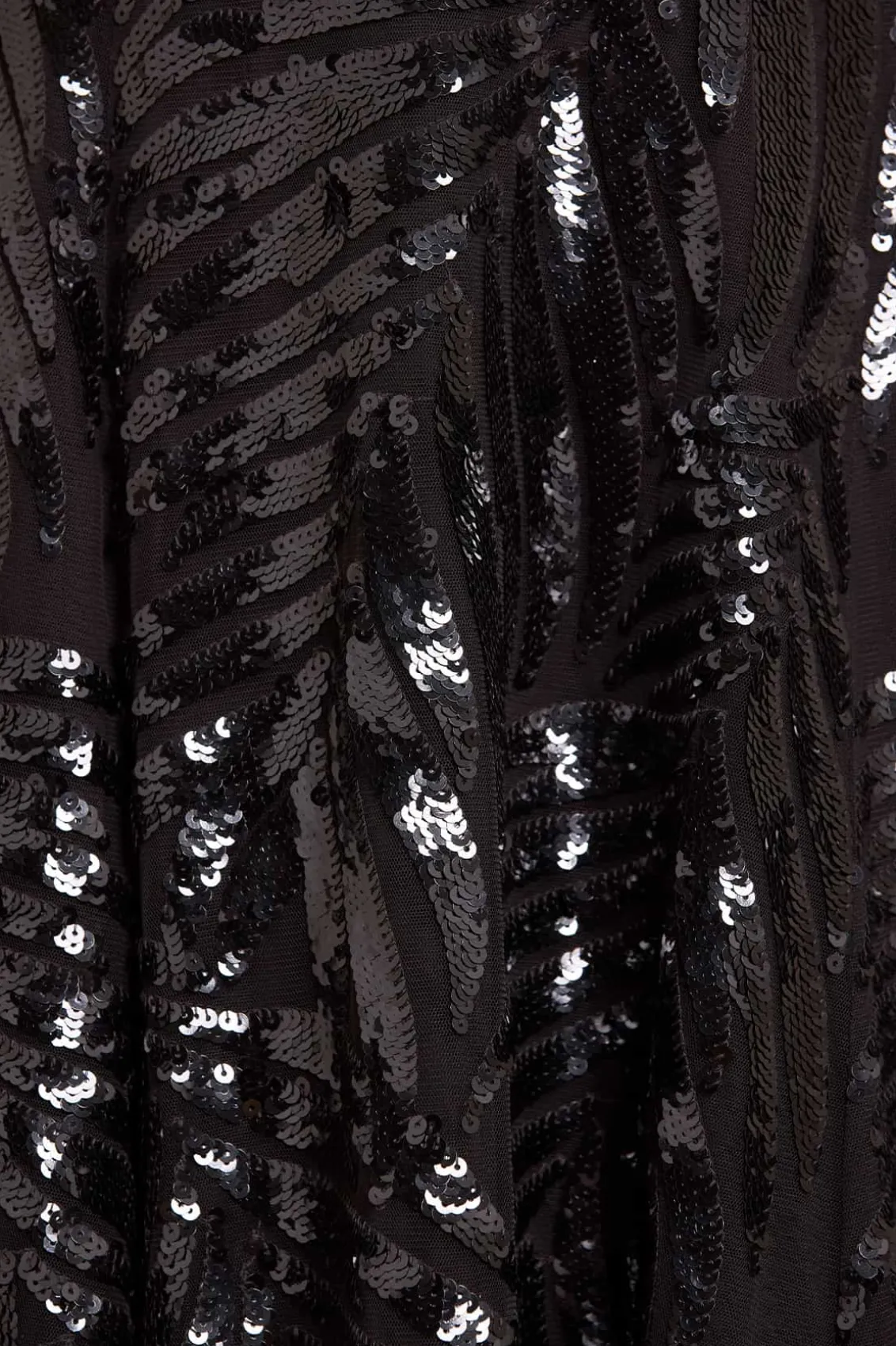 The Feather Sequin One-Shoulder Ankle Gown in Graphite. This show-stopping gown features statement feather sequin artwork inspired by costumes worn by the Follie’s dancers of the early 1900s. Beautifully designed with perfectly placed sequins gradually trailing towards the hem. Crafted with an elegant one-shoulder structure, slim sleeves and signature Needle & Thread tulle frills at the neckline and shoulder. The skirt is developed with generous layers of net and tulle for a sweeping hemline. The perfect gown for an upcoming special occasion and beyond.