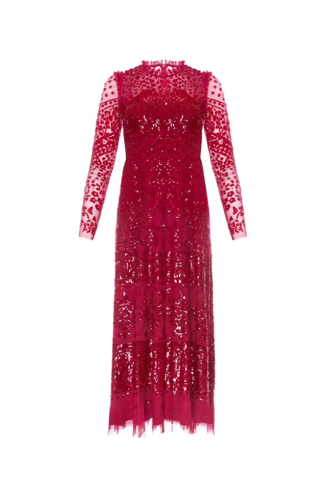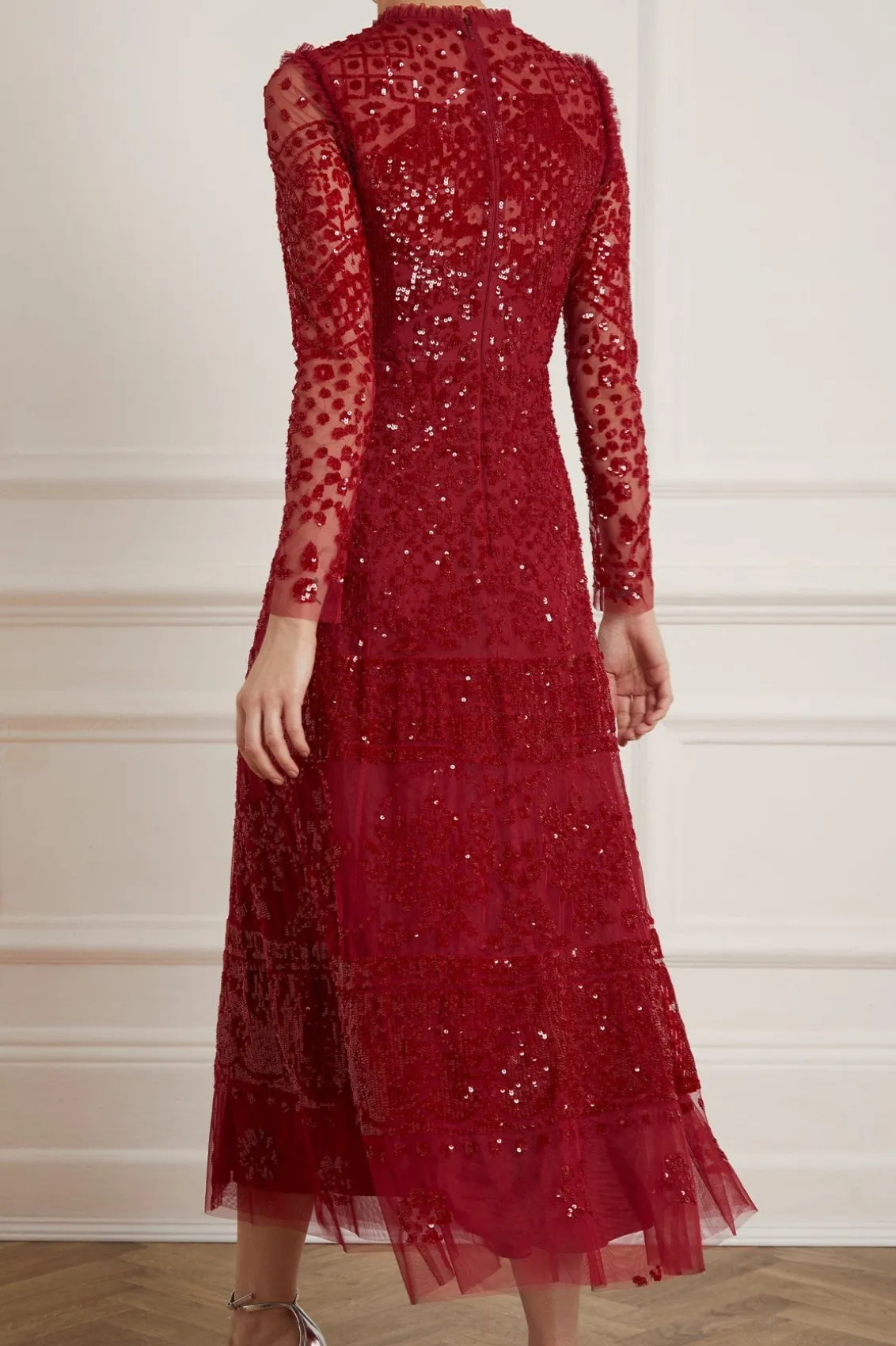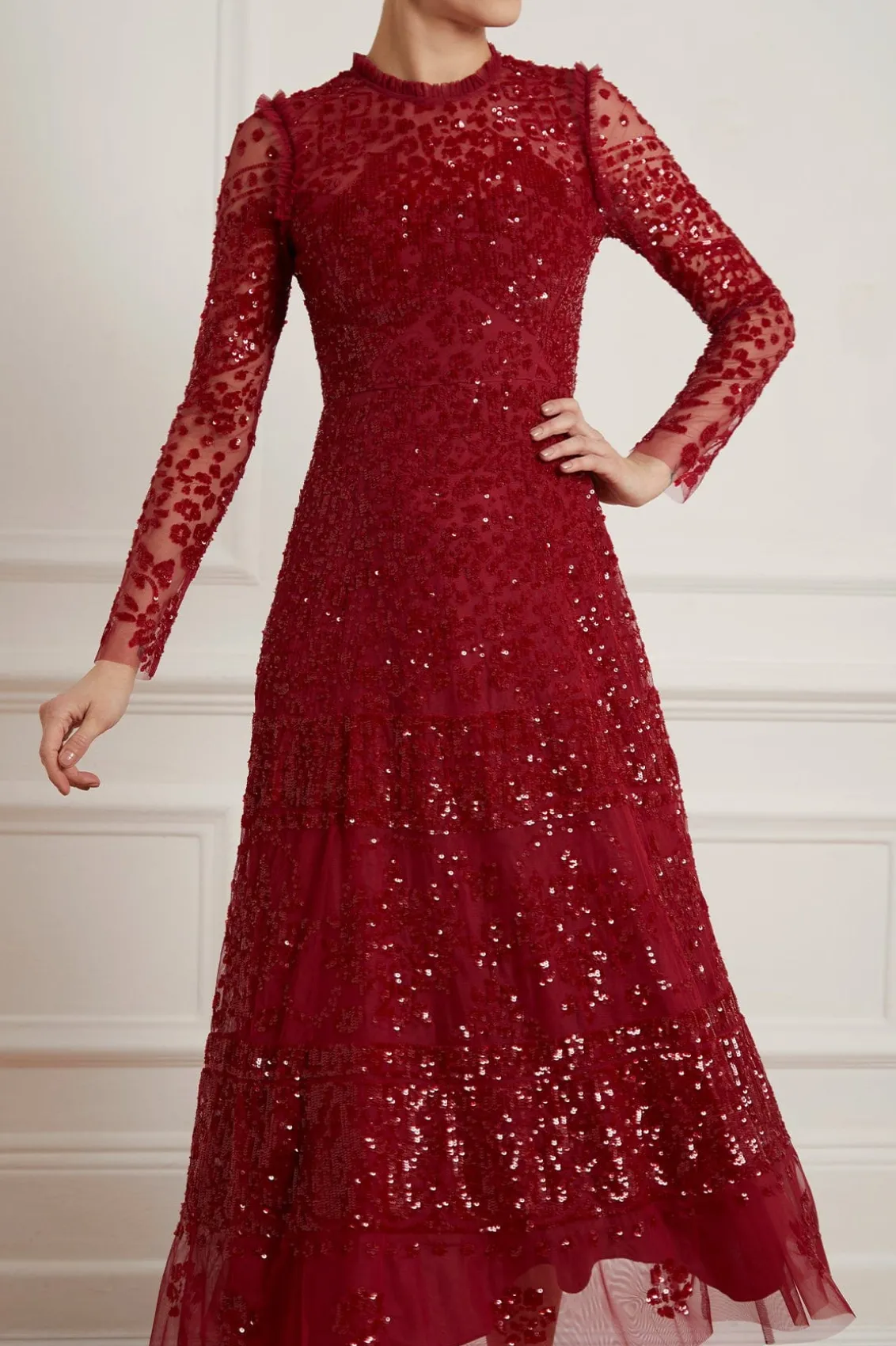 – Form fitted bodice, fitted sleeve with a multi-layered full skirt- Delicate dry clean only